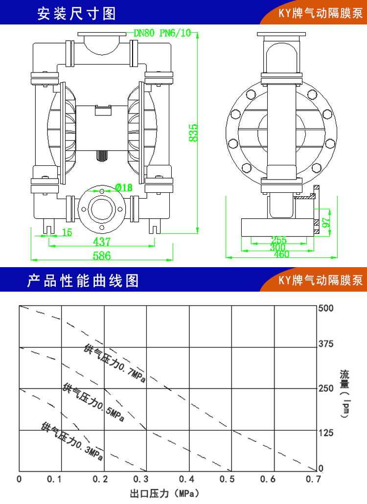 7、氣動化工隔膜泵不需灌引水,吸程高達(dá)5米,揚(yáng)程達(dá)70米,出口壓力≧7bar
