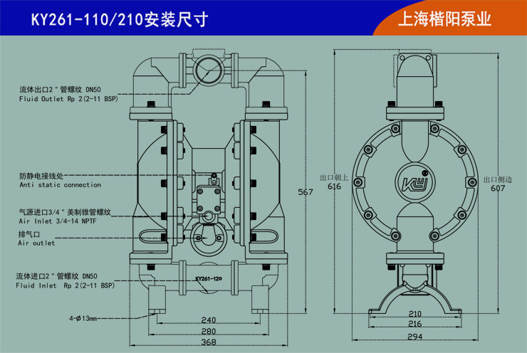 KY261-120不銹鋼304氣動隔膜泵和KY261-220不銹鋼316L氣動隔膜泵是上??柋脴I的高端產品之一,自吸能力和流量輸送能力極強:干吸可以達到5米垂直高度,濕吸8-10米垂直高度,在工作壓力8公斤時還可以保證足夠流量輸出。