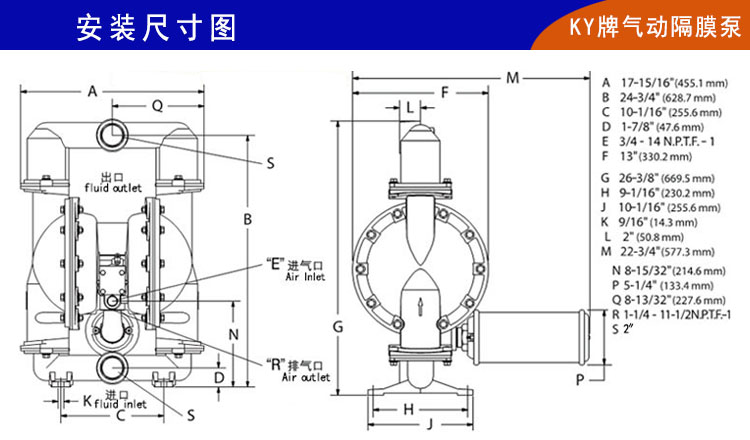 KY-50LP新一代氣動(dòng)隔膜泵,配氣裝置進(jìn)一步革新,中間體和隔排為一體式;助動(dòng)軸和助動(dòng)滑塊也改為一體式生產(chǎn),并且增加了滑閥助動(dòng)換氣裝置,大大提高了空氣利用效率,避免了因氣壓不穩(wěn)定而產(chǎn)生的死機(jī)、停機(jī);真正做到了無死機(jī),其脈沖也明顯降低,和自動(dòng)化機(jī)械設(shè)備做到無縫連接。新型不銹鋼氣動(dòng)隔膜泵整體構(gòu)造上更加優(yōu)化,泵腔和主管路都有明顯加強(qiáng),自吸功能和流量揚(yáng)程都有很大改善(最大流量/54立方/小時(shí),最大揚(yáng)程80米);被客戶成為超大流量304氣動(dòng)隔膜泵和壓濾機(jī)專用304氣動(dòng)隔膜泵。
