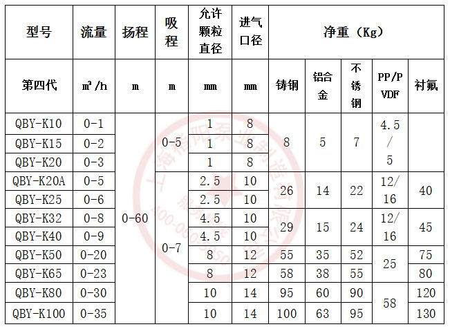 泵浦出口壓力:QBY-K型6kgf/cm2;