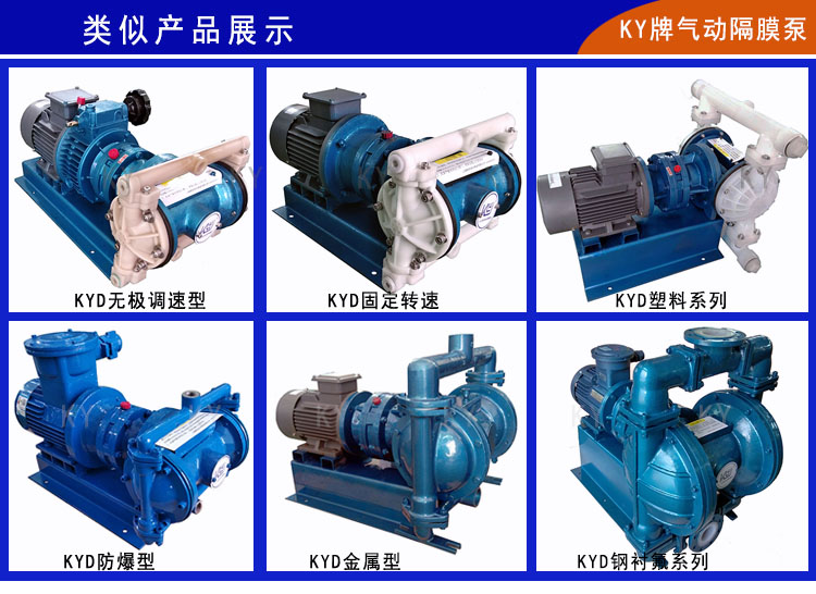 KYD型電動耐酸堿隔膜泵獨特的原理和簡單的結構贏得了廣大客戶一致好評主要優點可以總結為:通過性能好,可代替離心泵、泥漿泵、雜質泵良好的通過大顆粒雜質、泥漿等;運行平穩,安全可靠、噪音低;可以空載運行,不需引灌水可自吸等??柋脴I專注于耐酸堿隔膜泵的研發與生產,可根據客戶需求加配防爆電機、無極調速等功能。