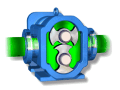 雙螺桿泵與齒輪泵十分相似,一個(gè)螺桿轉(zhuǎn)動,帶動另一個(gè)螺桿,液體被攔截在嚙合室內(nèi),沿桿軸方向推進(jìn),然后被擠向中央排出。