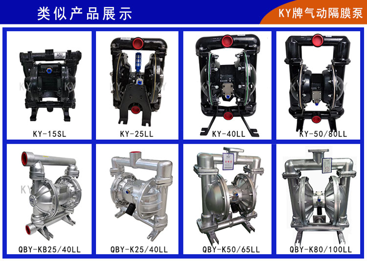 9、KY牌鋁合金氣動隔膜泵整體構造上更加優化,泵腔和主管路都有明顯加強,自吸功能和流量揚程都有很大改善。